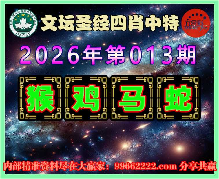 013期:《文坛圣经》 🥩四肖中特🥩【猴.鸡.马.蛇】开:蛇01准