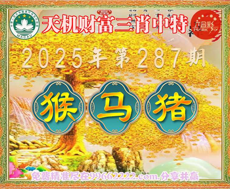 287期: 天机财富 🧸三肖中特🧸【猴.马.猪】开:猴34准
