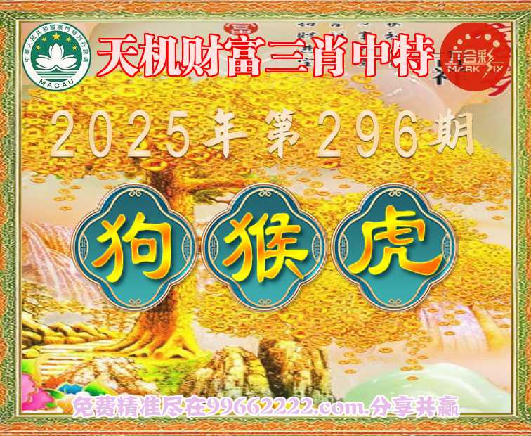 296期: 天机财富 🧸三肖中特🧸【狗.猴.虎】开:猴22准