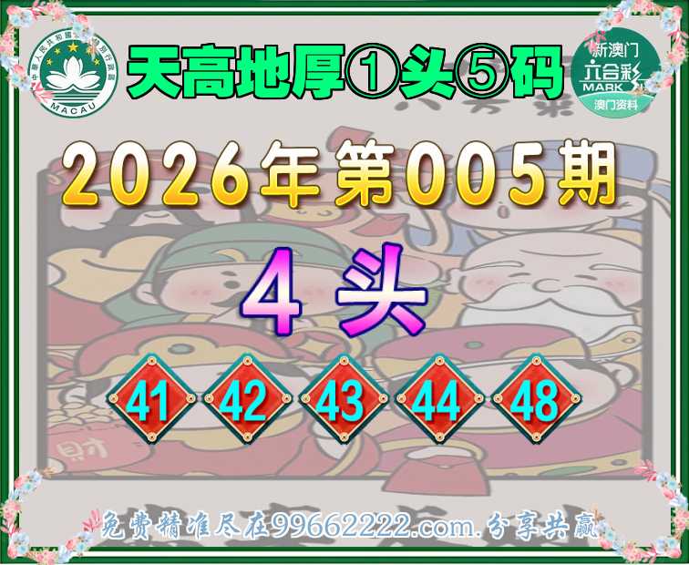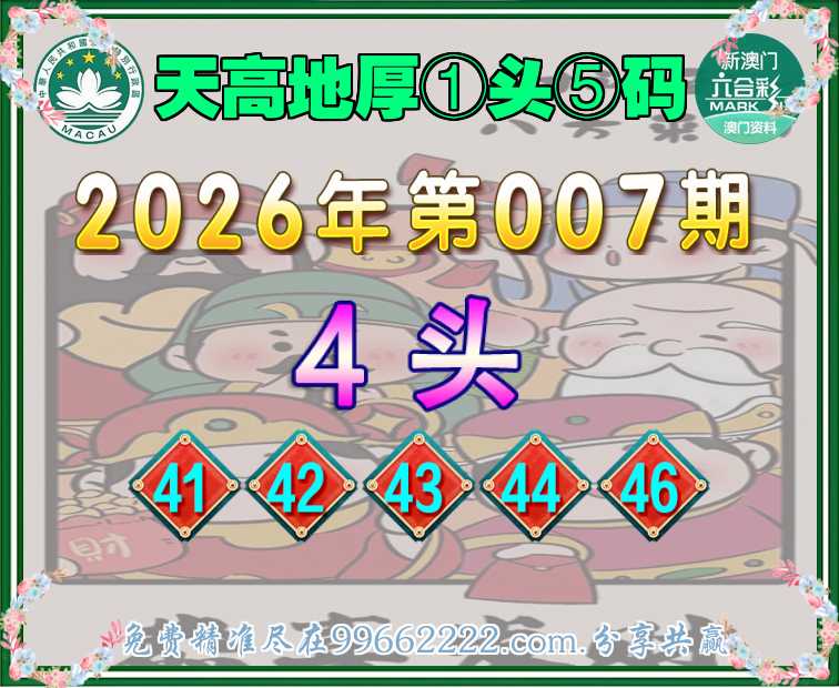 007期:【天高地厚】 📙①头⑤码📙【4头主:41.42.43.44.46】开:41准
