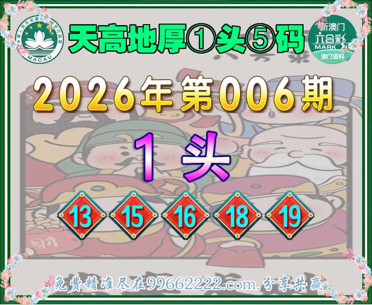 006期:【天高地厚】 📙①头⑤码📙【1头主:13.15.16.18.19】开:13准