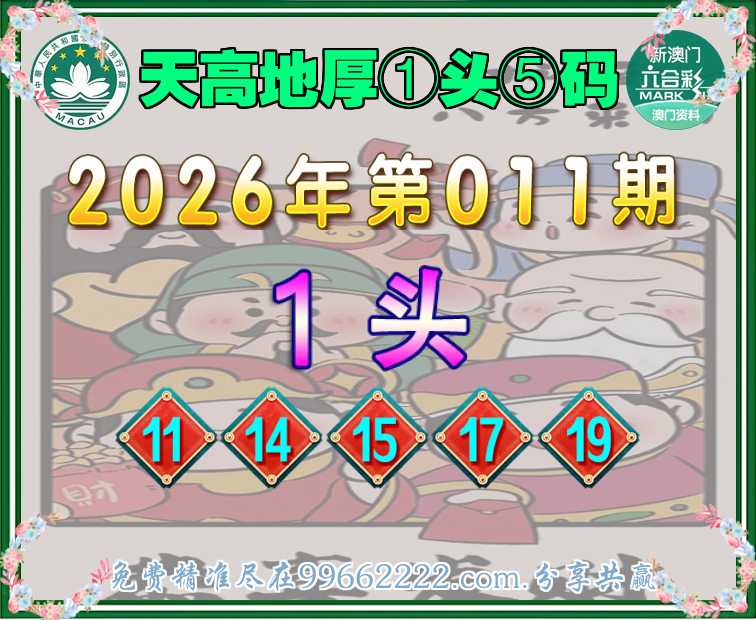 011期:【天高地厚】 📙①头⑤码📙【1头主:11.14.15.17.19】开:11准
