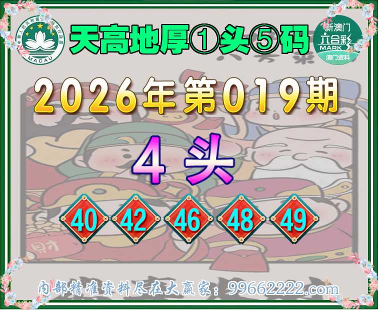 019期:【天高地厚】 📙①头⑤码📙【4头主:40.42.46.48.49】开:46准