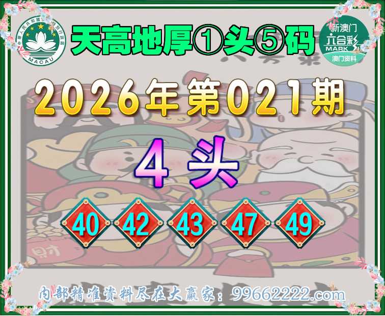 021期:【天高地厚】 📙①头⑤码📙【4头主:40.42.43.47.49】开:42准
