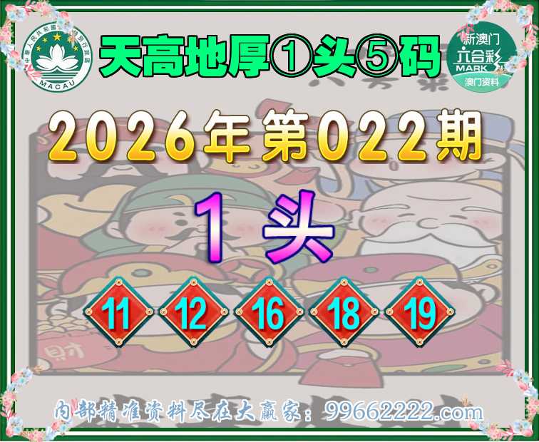 022期:【天高地厚】 📙①头⑤码📙【1头主:11.12.16.18.19】开:18准