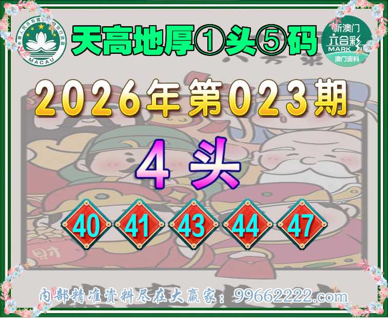 023期:【天高地厚】 📙①头⑤码📙【4头主:40.41.43.44.47】开:47准