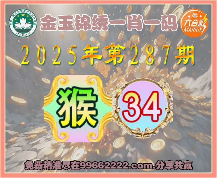 287期: 🍀『金玉锦绣』 🍀一肖一码🍀【猴】【34】开:猴34准