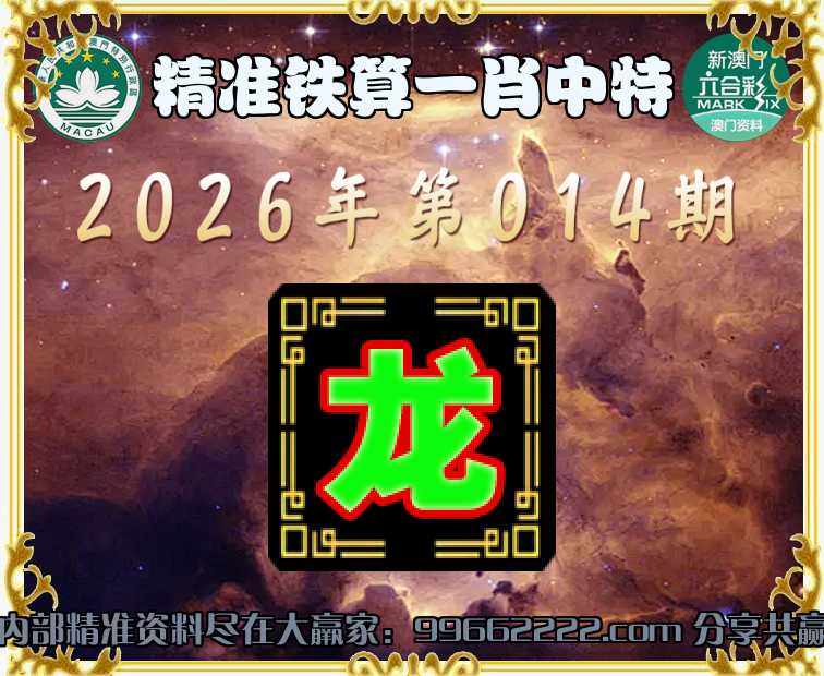 014期:《精准铁算》 ✂️一肖中特✂️【龙】开:龙26准