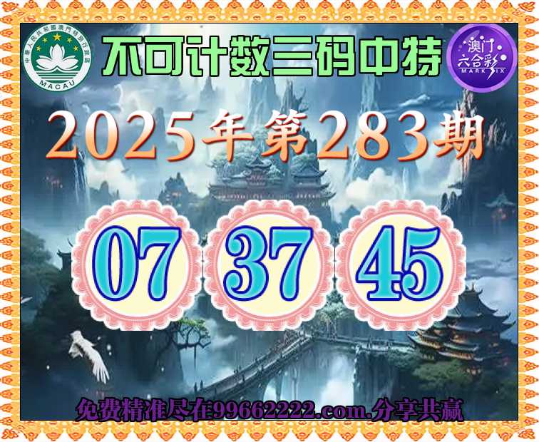 283期:『不可计数』 ⌚三码中特⌚【07.37.45】开:45准