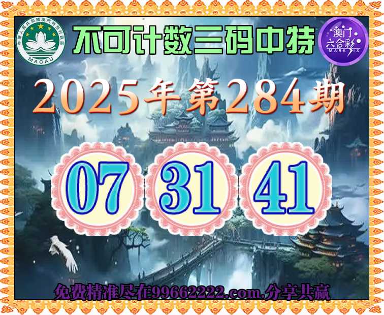 284期:『不可计数』 ⌚三码中特⌚【07.31.41】开:41准