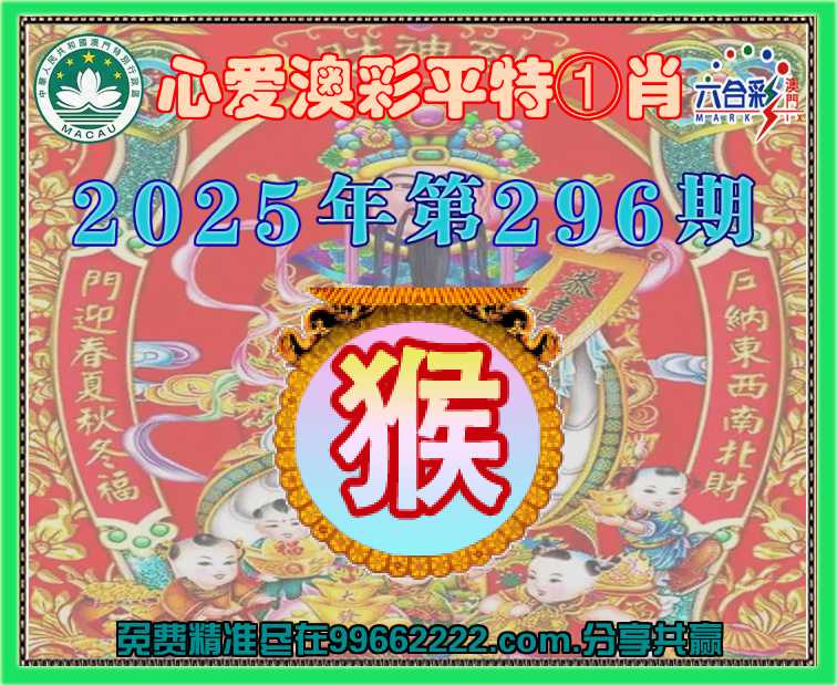 296期:〖心爱澳彩〗 👑平特①肖👑【猴】开:猴22准