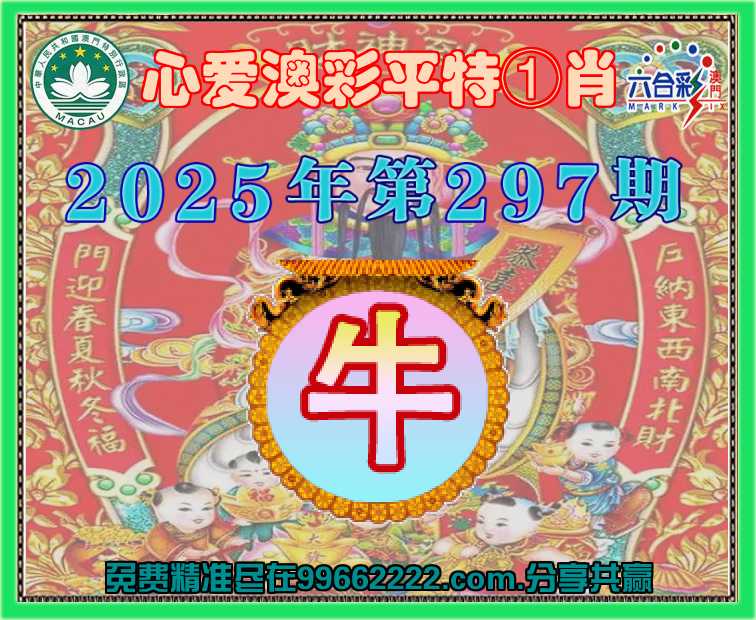 297期:〖心爱澳彩〗 👑平特①肖👑【牛】开:牛41准