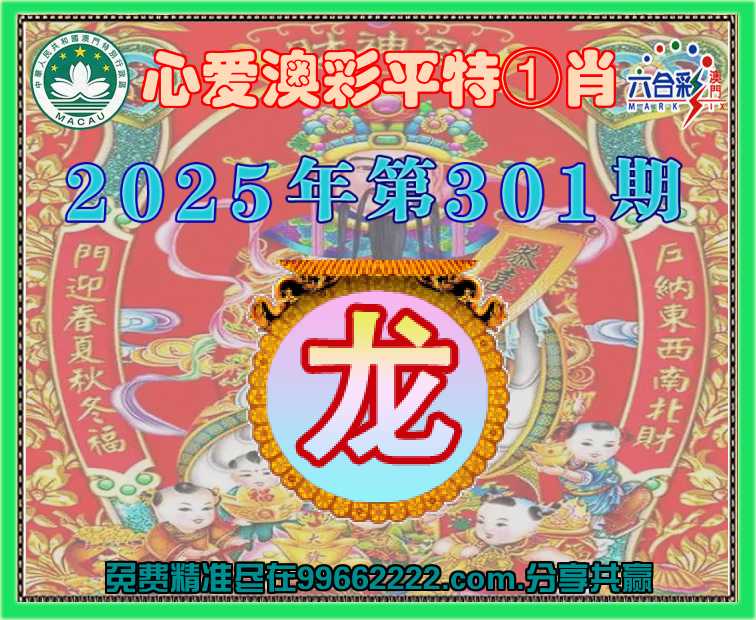 301期:〖心爱澳彩〗 👑平特①肖👑【龙】开:00准