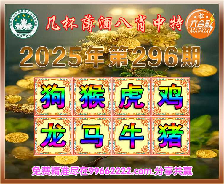 296期: 🪢『几杯薄酒』 🪢八肖中特🪢开:猴22准