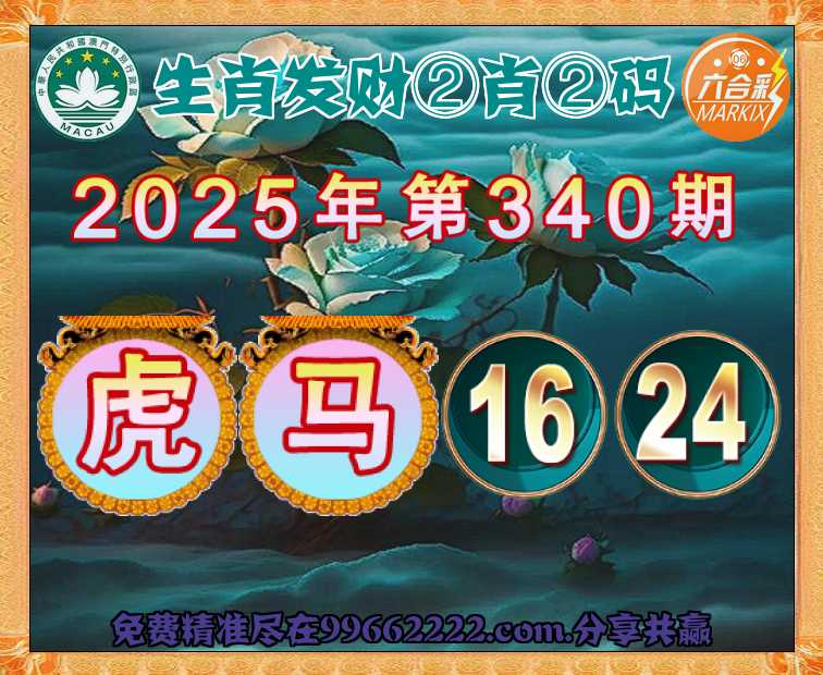 340期:『生肖发财』 🥧②肖②码🥧【虎马】【16.24】开:虎16准