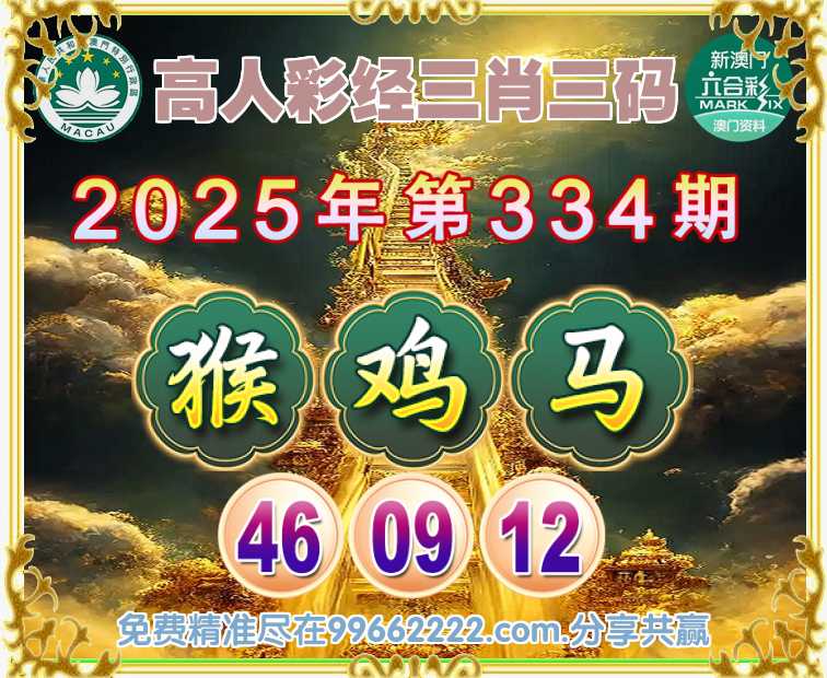334期:『高人彩经』 ♣️三肖三码 ♣️【猴鸡马】【46.09.12】开:猴46准