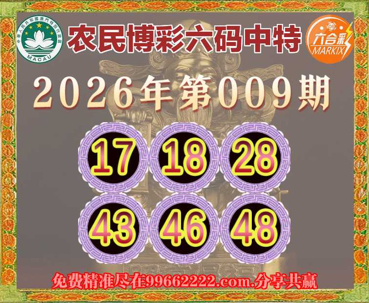 009期:《农民博彩》 ☘️六码中特☘️【17.18.28.43.46.48】开:28准