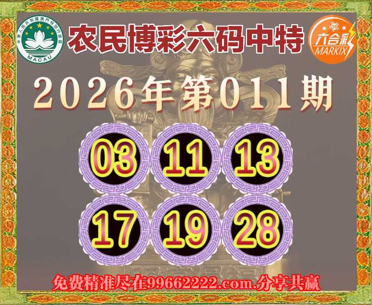 011期:《农民博彩》 ☘️六码中特☘️【03.11.13.17.19.28】开:11准
