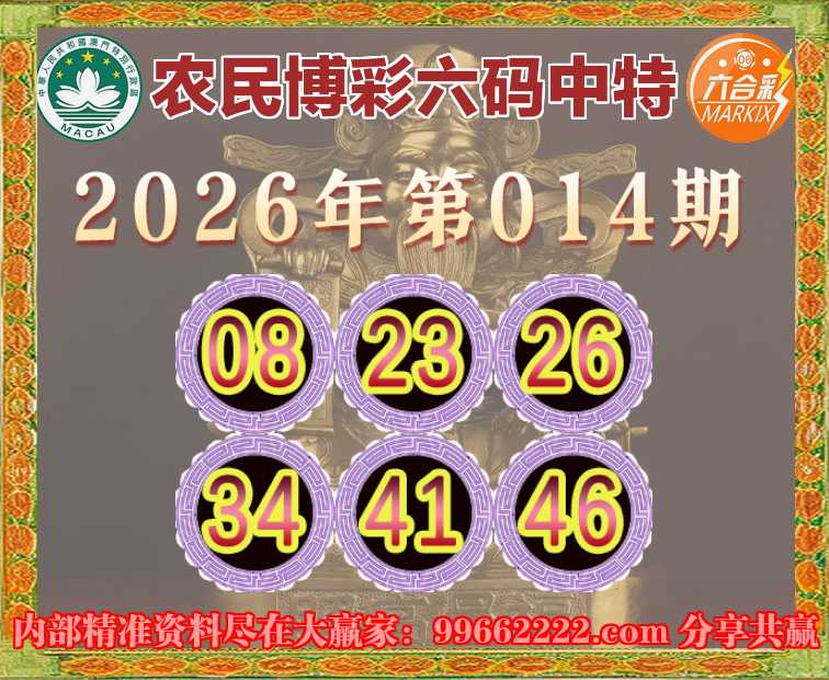 014期:《农民博彩》 ☘️六码中特☘️【08.23.26.34.41.46】开:26准