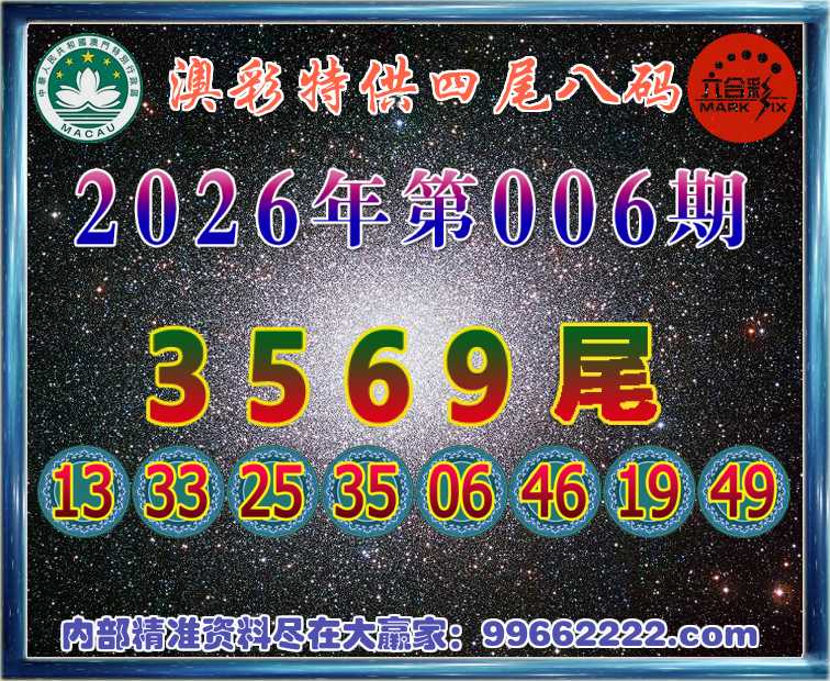 016期:《澳彩特供》 🏵️四尾八码🏵️【4569尾】开:06准