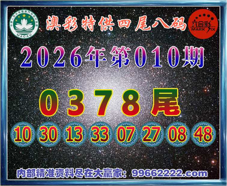 010期:《澳彩特供》 🏵️四尾八码🏵️【0378尾】开:27准