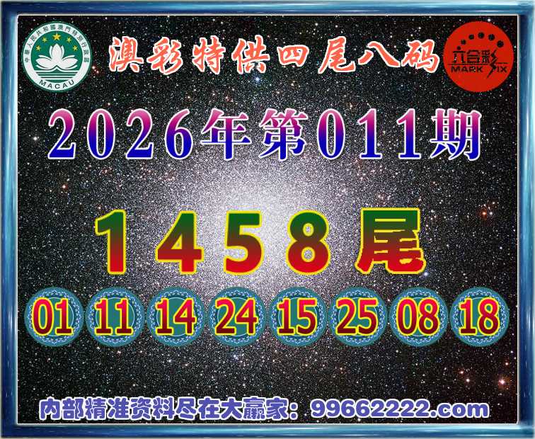 011期:《澳彩特供》 🏵️四尾八码🏵️【1458尾】开:11准