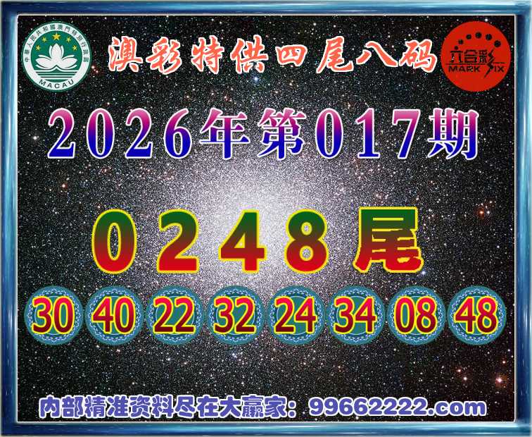 017期:《澳彩特供》 🏵️四尾八码🏵️【0248尾】开:32准