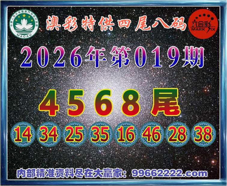 019期:《澳彩特供》 🏵️四尾八码🏵️【4568尾】开:46准